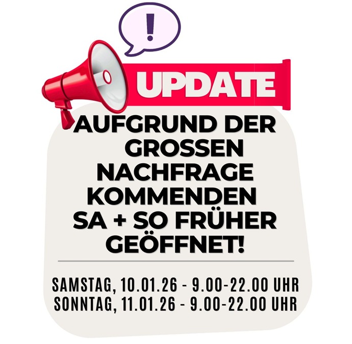 Aufgrund der großen Nachfrage sind wir am kommenden Samstag und Sonntag schon ab 09.00 Uhr für Euch da!